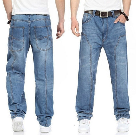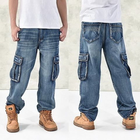 HOT New 2020 Large Size 30-44 46 Jeans Fashion Loose Big Pockets Hip-Hop Skateboard Casual Men Denim Blue & Black Design Brand